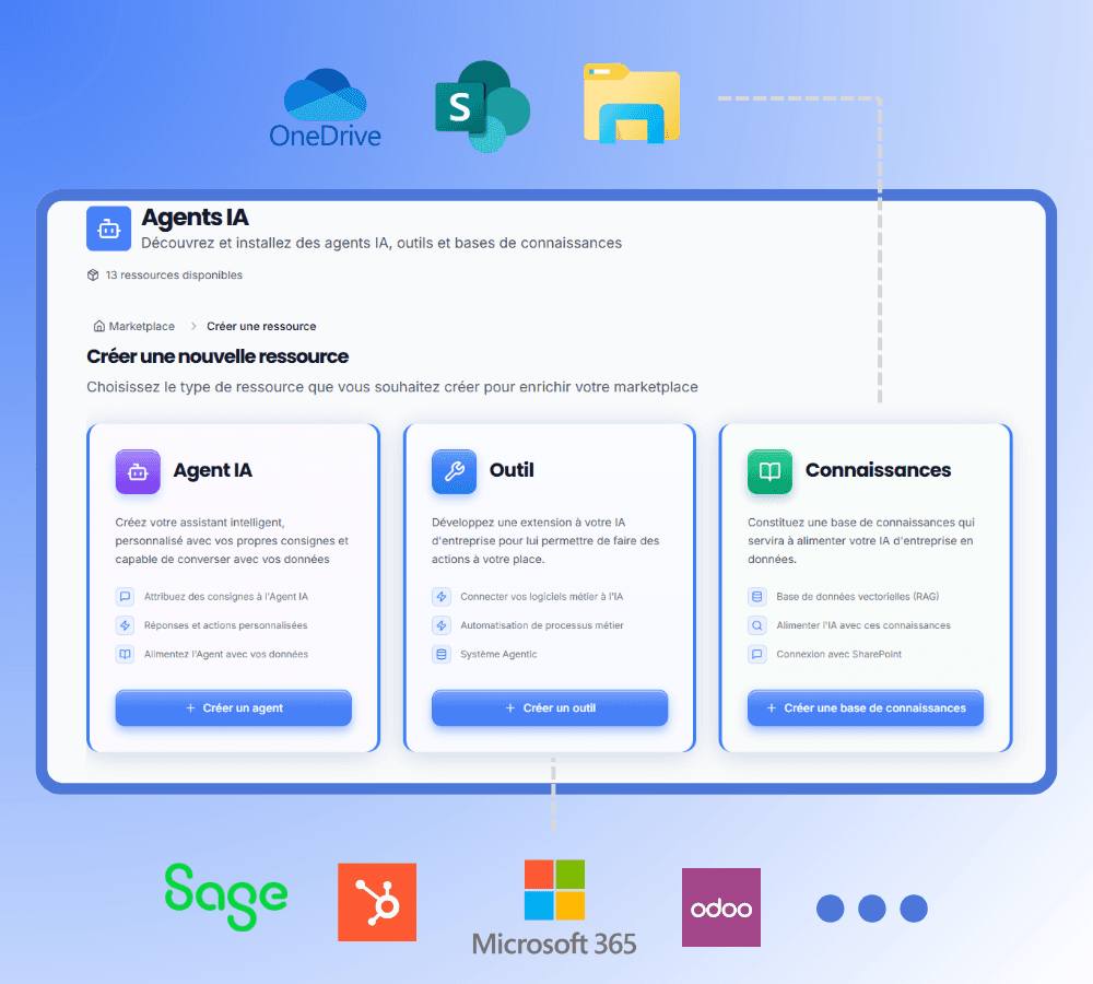 Créez des agents IA alimentés par vos bases SharePoint et serveurs de fichiers
